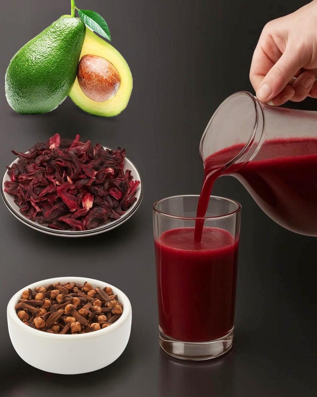 Він складається з квітки гібіскуса, гвоздики та кісточки авокадо – трьох інгредієнтів, які разом допомагають очистити кров, збалансувати кров’яний тиск, знизити рівень цукру, зменшити запалення в організмі та зміцнити серце та вени.