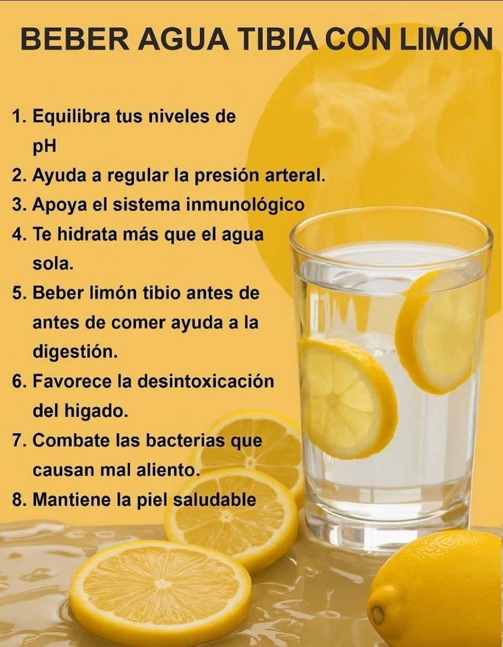 Tomar agua tibia con limón ofrece varios beneficios para la salud, incluyendo la mejora de la digestión, el fortalecimiento del sistema inmunológico y la posible ayuda en la pérdida de peso. También puede contribuir a una piel más saludable y a la hidratación del cuerpo.