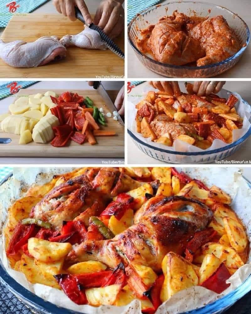 Delicious Chicken with Potatoes Recipe Ingredients: 6 chicken thighs 5-6 potatoes 1 tomato 1 pepper Marinade: Continue Reading in the next page 🥰💕